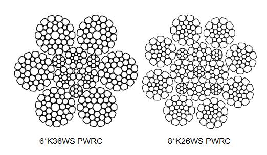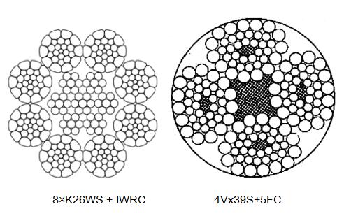 海洋平臺起重機 | 主起升繩 | ·35XK7 壓實股抗旋轉鋼絲繩 · 18 股壓實股抗旋轉鋼絲繩 |