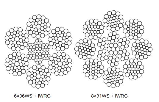 井架提升繩 | ·6 股大直徑鋼絲繩 ·6X36 類線接觸鋼絲繩 | |